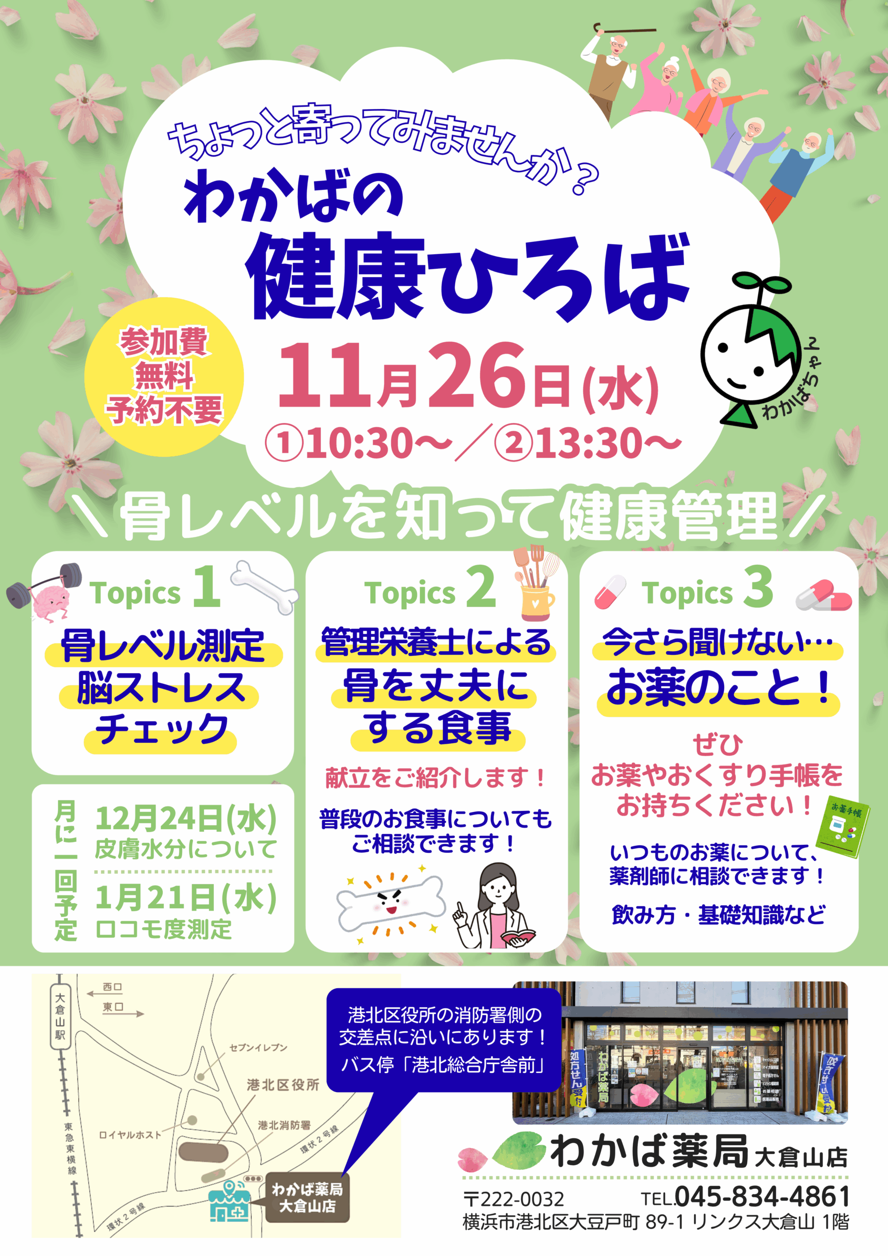 『わかばの健康ひろば』11月26日(水)わかば薬局大倉山店で開催します!🍃