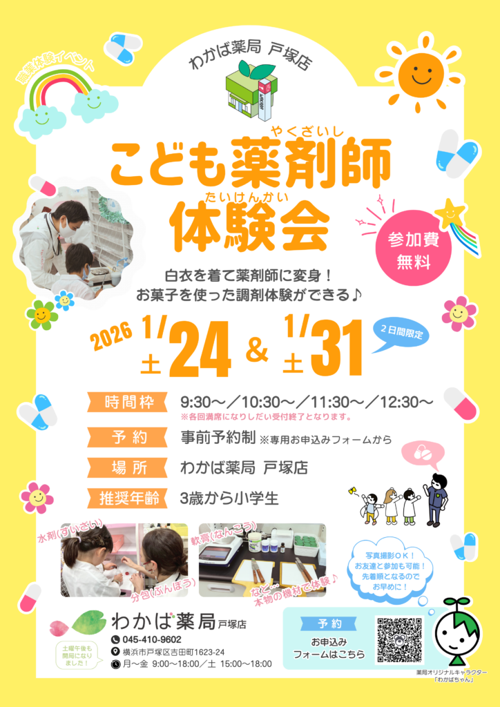 私たちのわかば薬局戸塚店で、地域にお住まいのお子様に向けてイベントを実施いたします!✨