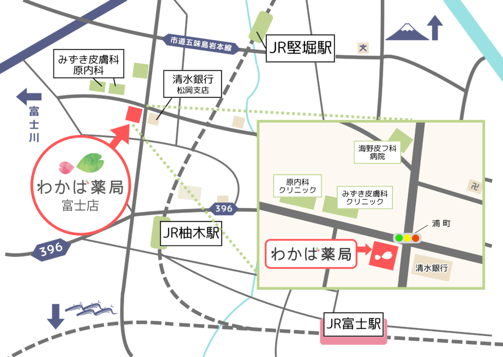 わかば薬局富士店は地域のみなさまの健康を支える「身近で相談しやすい薬局」を目指して参ります。